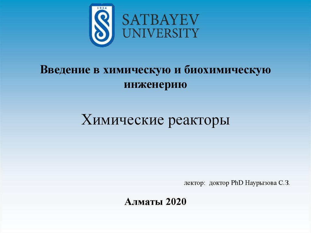 Химические реакторы. (Лекция 2)