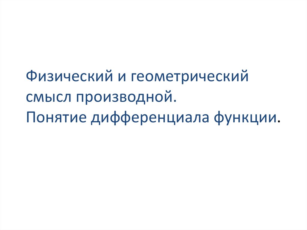 Физический и геометрический смысл производной. Понятие дифференциал функции