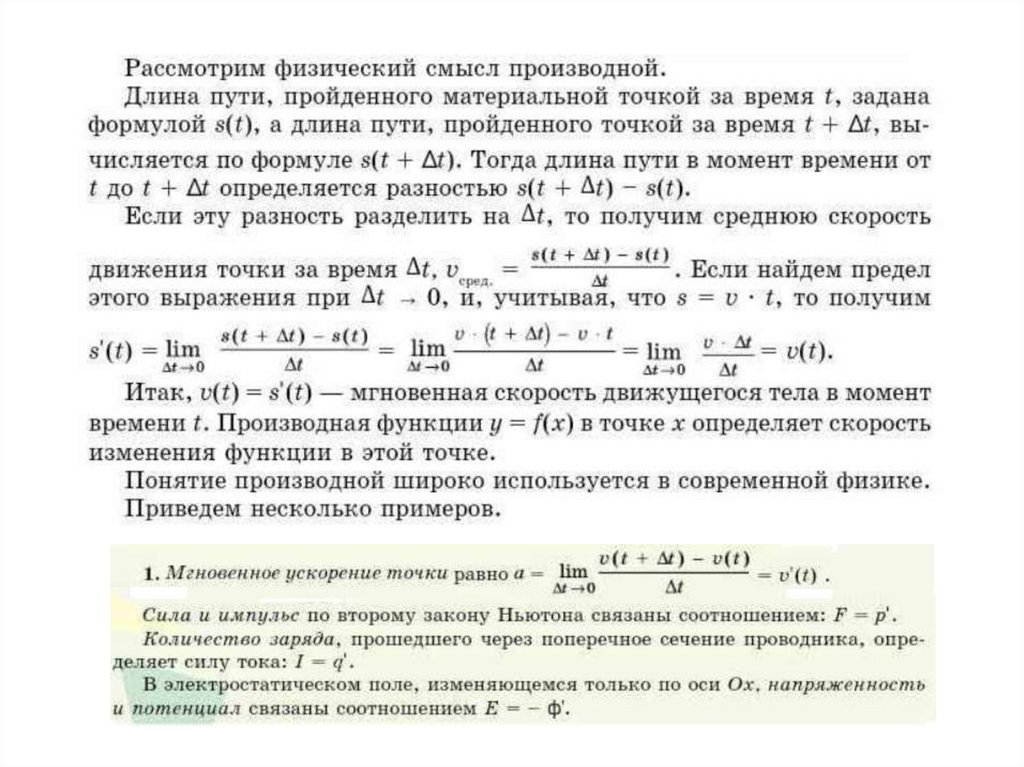 Понятие о производной функции, её геометрический и физический смысл. Производные элементарных функций