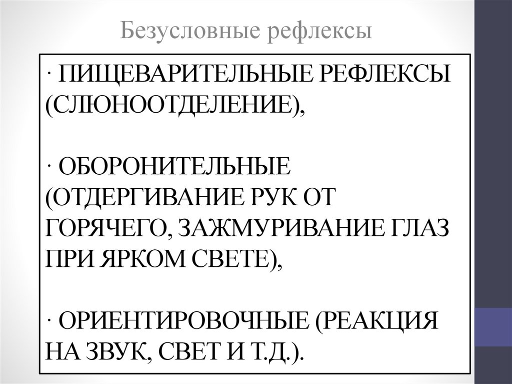 Безусловные рефлексы· ПИЩЕВАРИТЕЛЬНЫЕ РЕФЛЕКСЫ