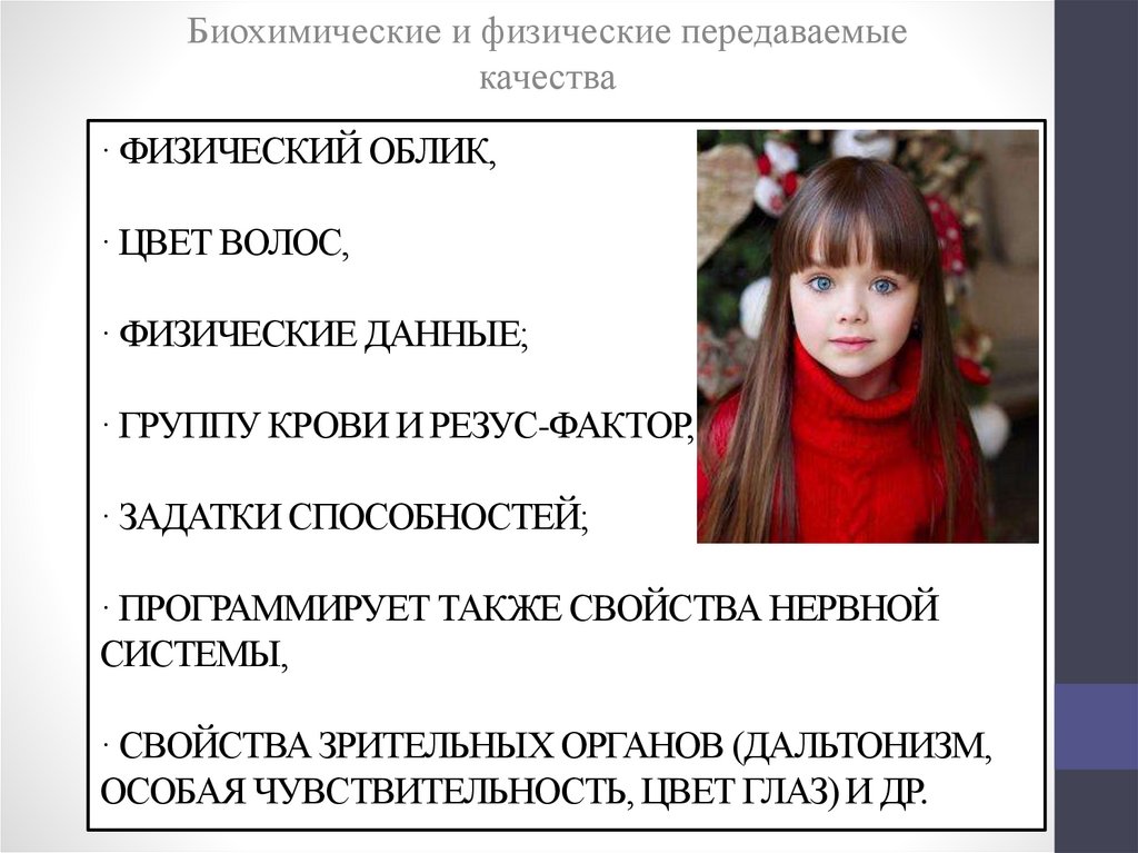 Биохимические и физические передаваемыекачества