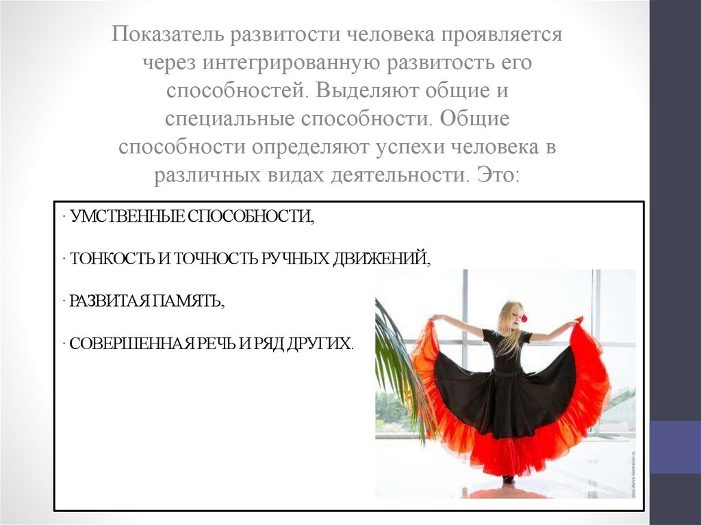 Показатель развитости человека проявляетсячерез интегрированную развитость его