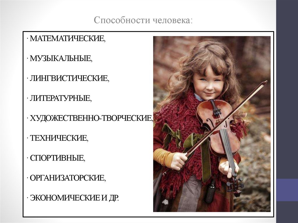 Способности человека:· МАТЕМАТИЧЕСКИЕ,