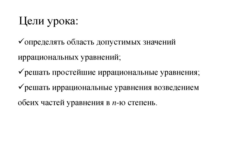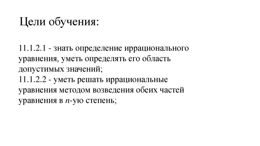 11.1.2.2 - уметь решать иррациональные