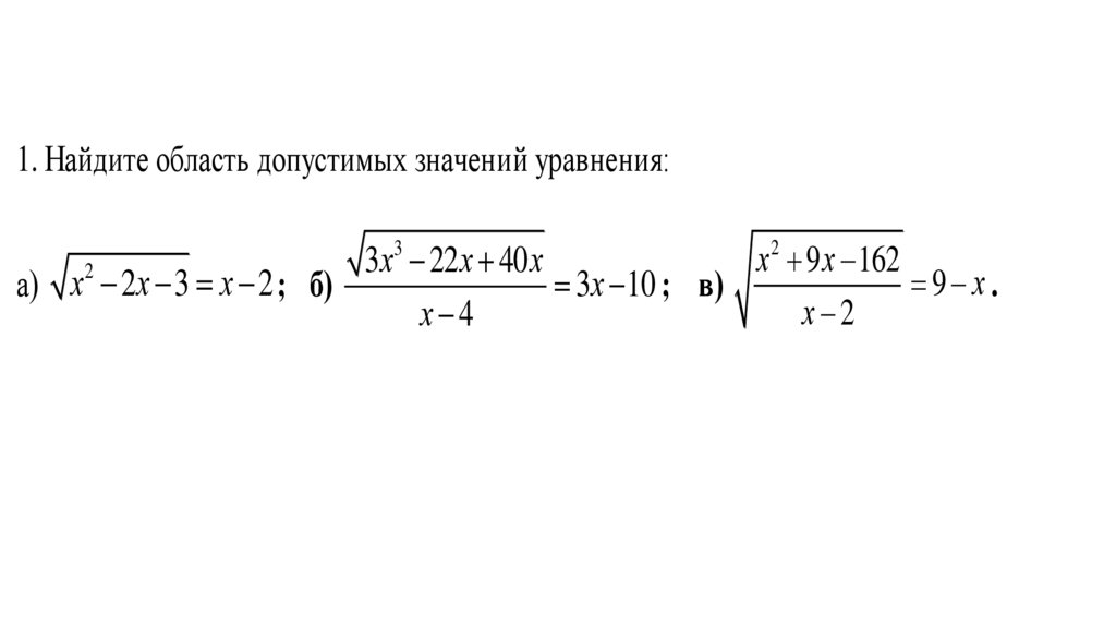 1. Найдите область допустимых значений уравнения:х 9 х 162