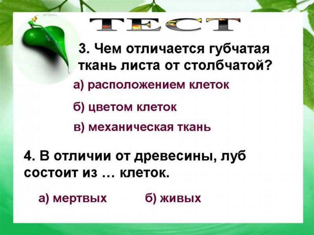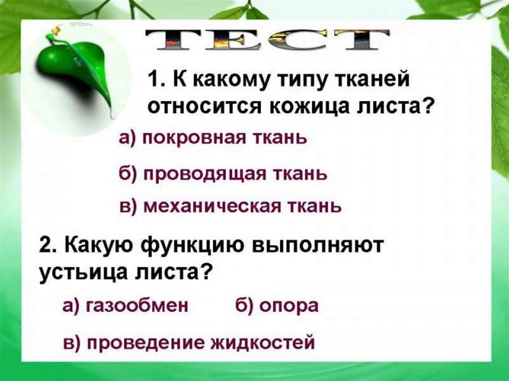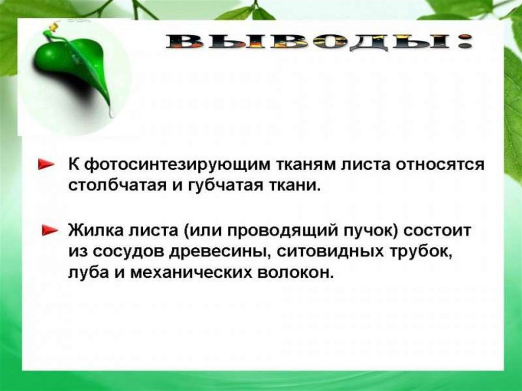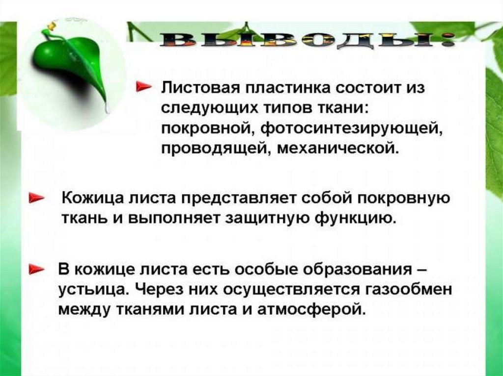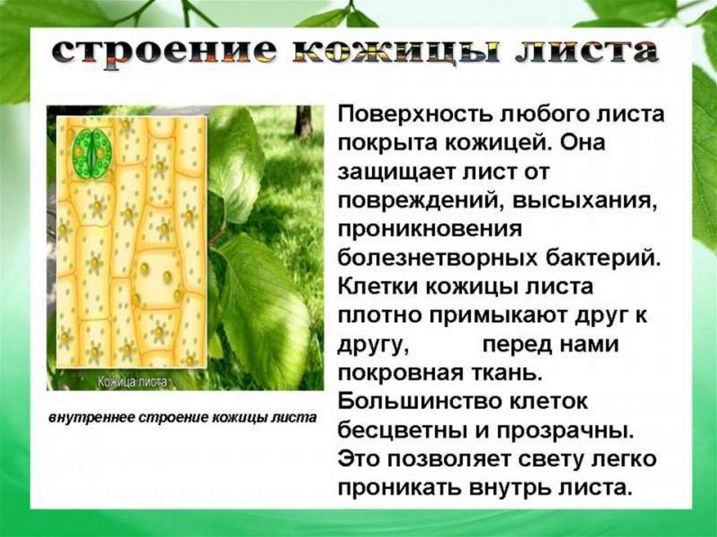Анатомия листа. Внутреннее строение листа (7 класс)