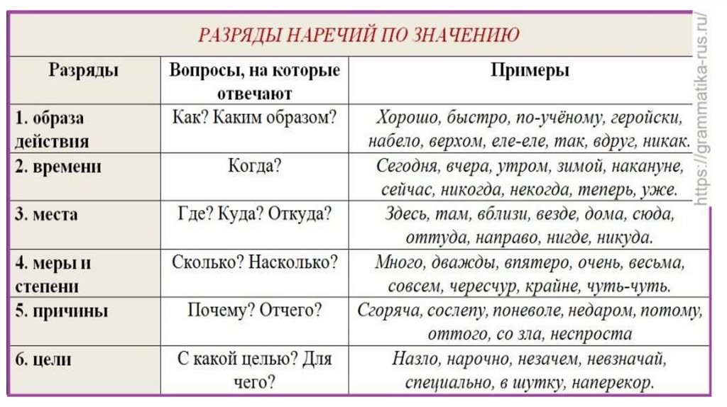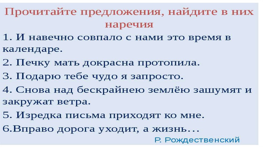 наречий, синтаксический разбор предложений.