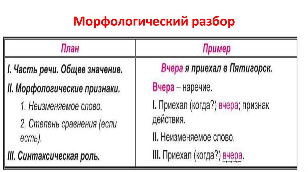 Морфологический разбор наречий.