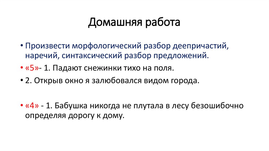 Домашняя работа• Произвести морфологический разбор деепричастий,