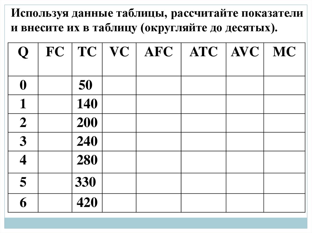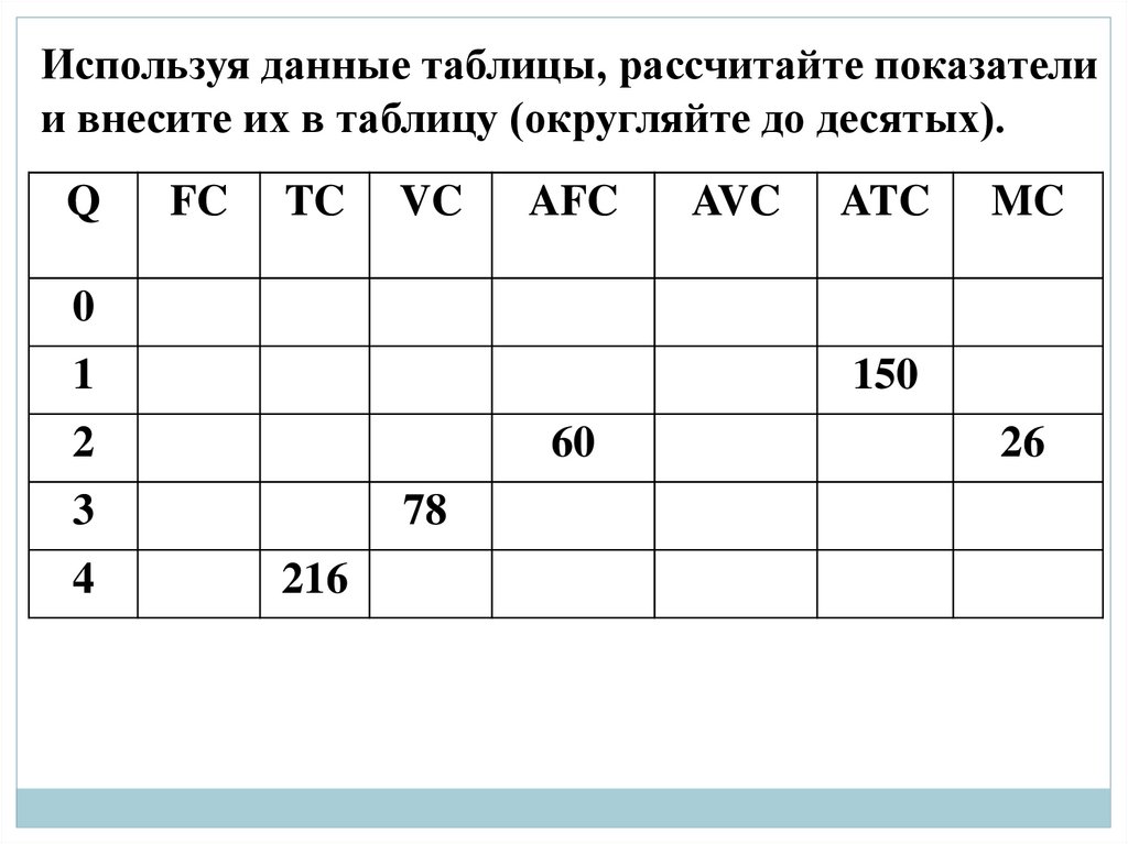 Используя данные таблицы, рассчитайте показателии внесите их в таблицу (округляйте до десятых).