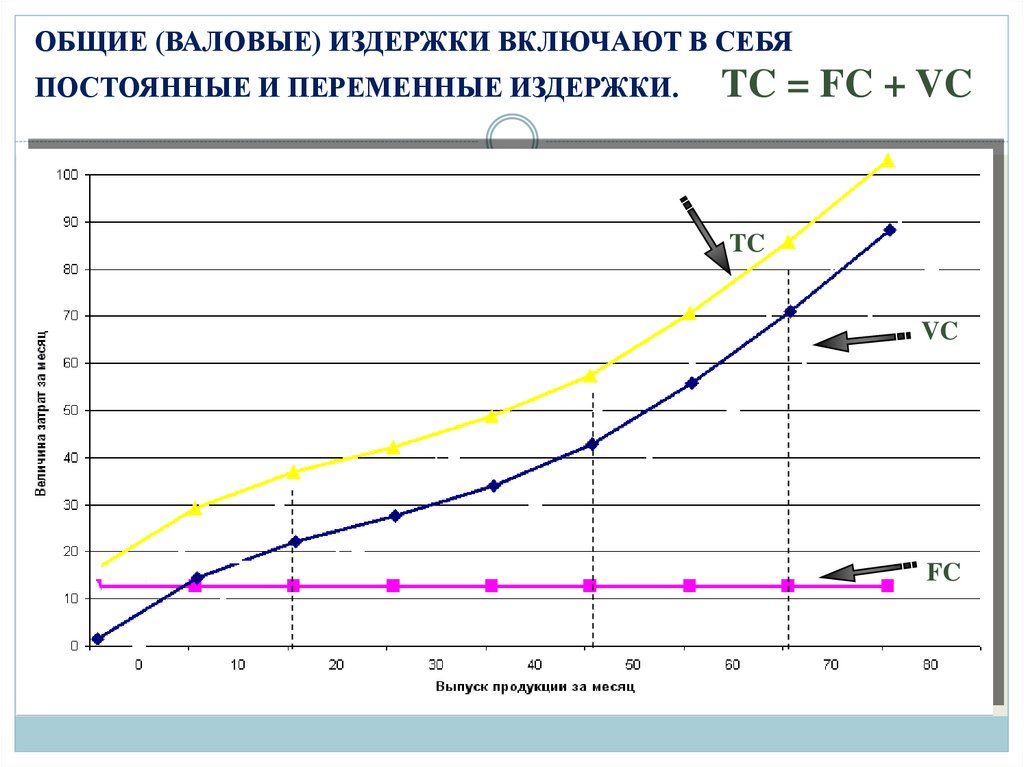 ОБЩИЕ (ВАЛОВЫЕ) ИЗДЕРЖКИ ВКЛЮЧАЮТ В СЕБЯПОСТОЯННЫЕ И ПЕРЕМЕННЫЕ ИЗДЕРЖКИ.