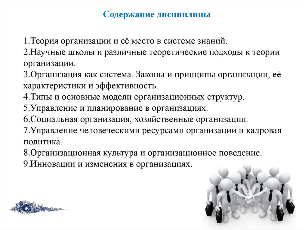 Содержание дисциплины1.Теория организации и её место в системе знаний.