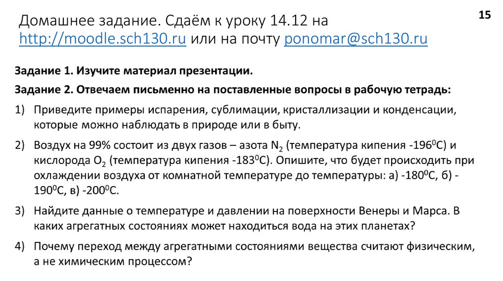 Домашнее задание. Сдаём к уроку 14.12 наhttp://moodle.sch130.ru или на почту ponomar@sch130.ru
