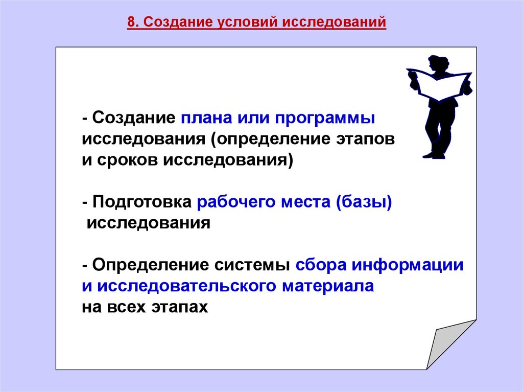8. Создание условий исследований- Создание плана или программы