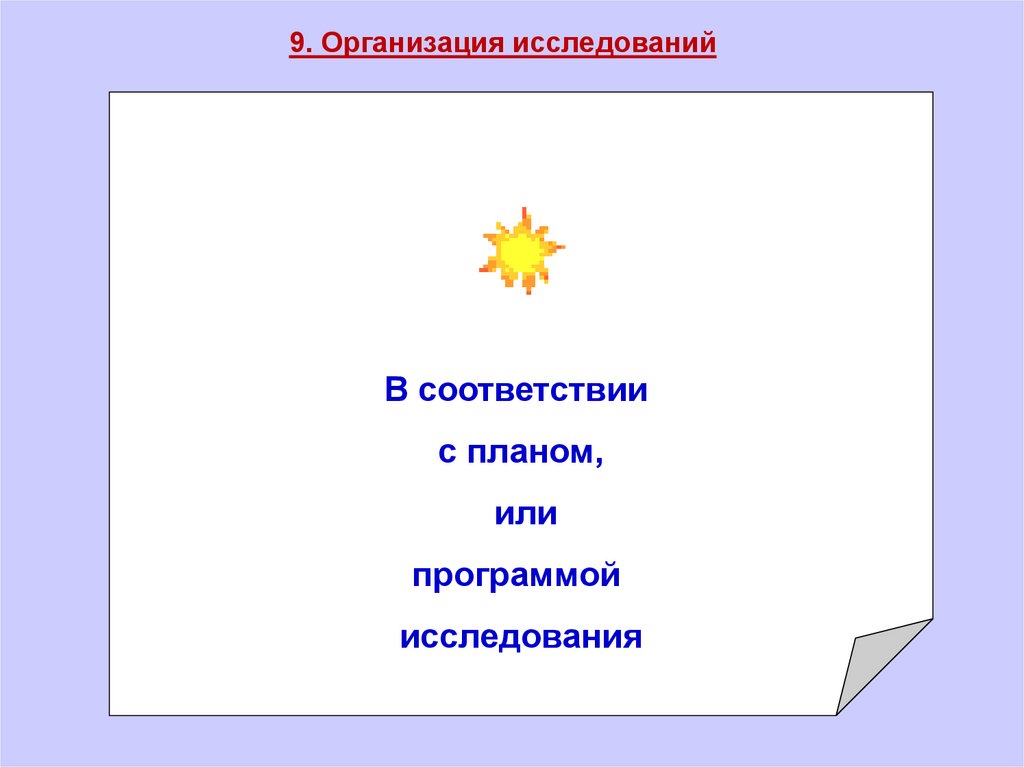 9. Организация исследованийВ соответствии