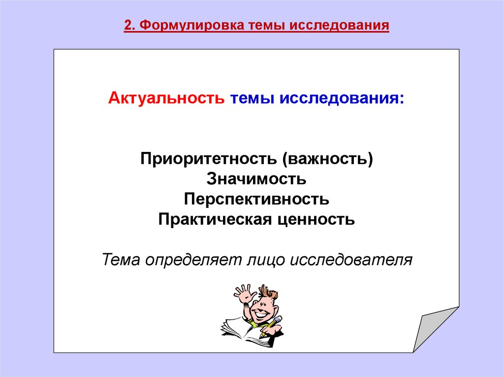 Тема определяет лицо исследователя
