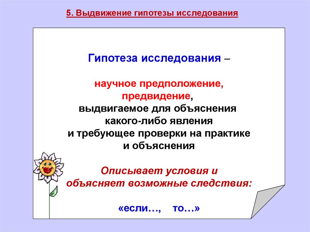 5. Выдвижение гипотезы исследованияГипотеза исследования –