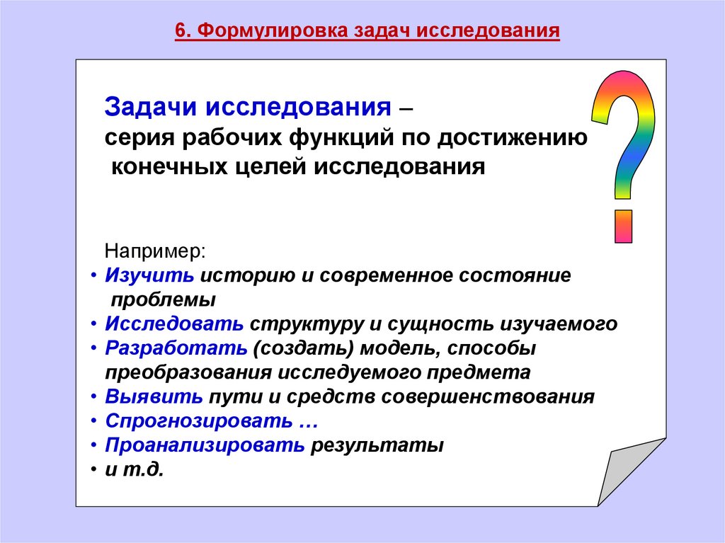6. Формулировка задач исследованияЗадачи исследования –