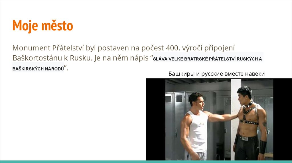 Baškortostánu k Rusku. Je na něm nápis “SLÁVA VELKÉ BRATRSKÉ PŘÁTELSTVÍ RUSKÝCH A