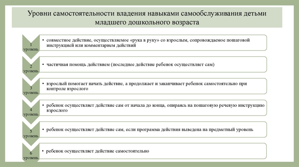 Уровни самостоятельности владения навыками самообслуживания детьмимладшего дошкольного возраста