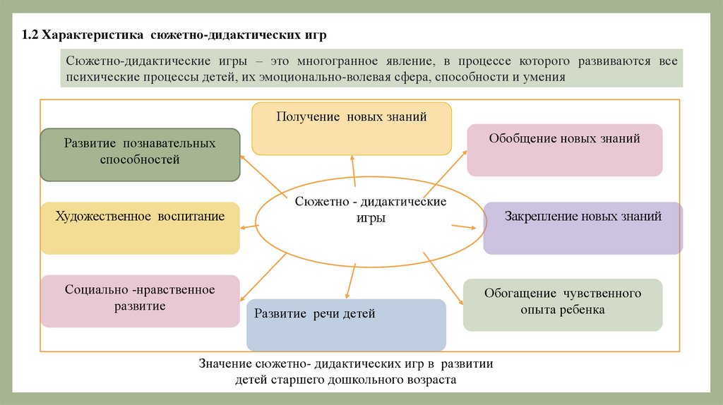 1.2 Характеристика сюжетно-дидактических игрСюжетно-дидактические игры – это многогранное явление, в процессе которого развиваются все