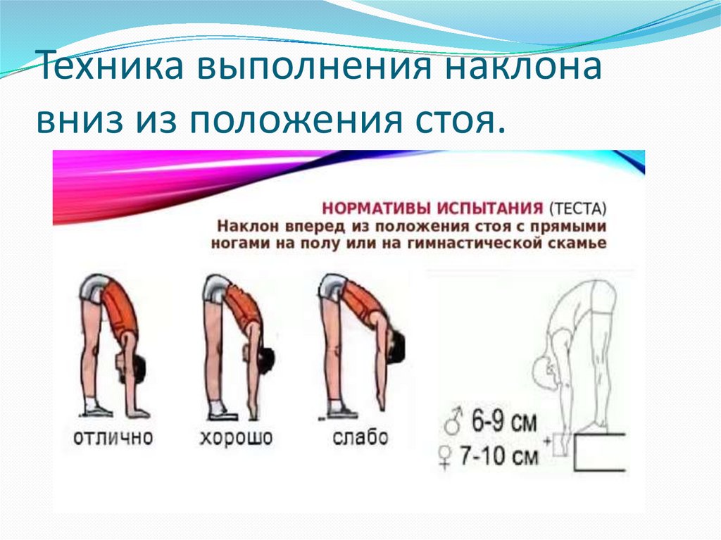 Техника выполнения наклонавниз из положения стоя.
