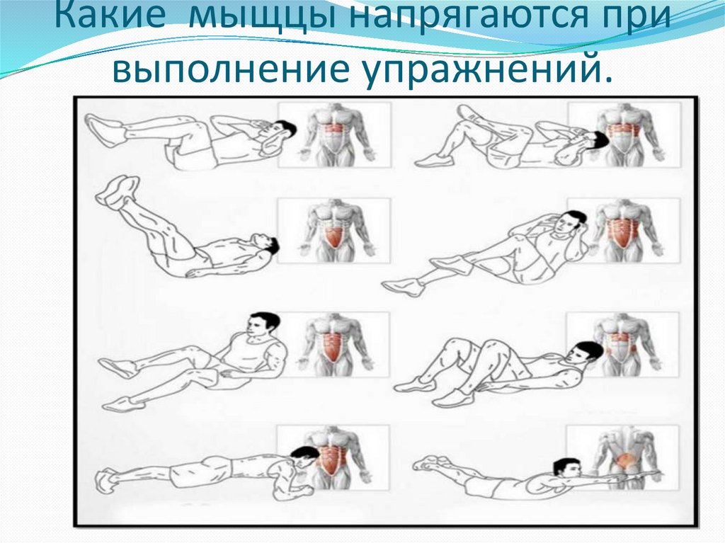 Какие мыщцы напрягаются привыполнение упражнений.