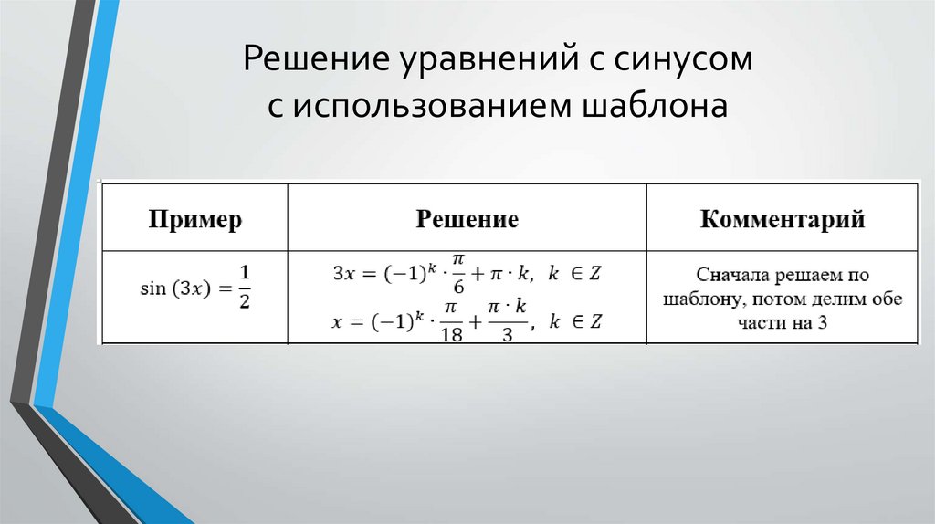 Решение уравнений с синусомс использованием шаблона