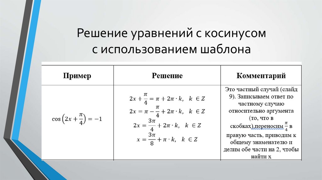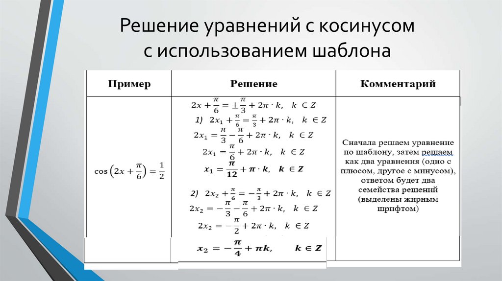 Решение уравнений с косинусомс использованием шаблона