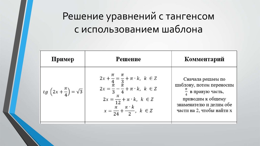 Решение уравнений с тангенсомс использованием шаблона