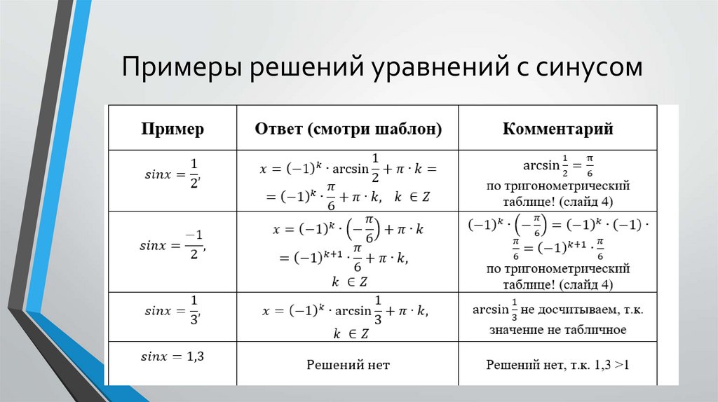 Примеры решений уравнений с синусом7.