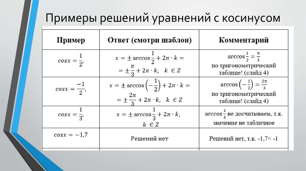Примеры решений уравнений с косинусом8.