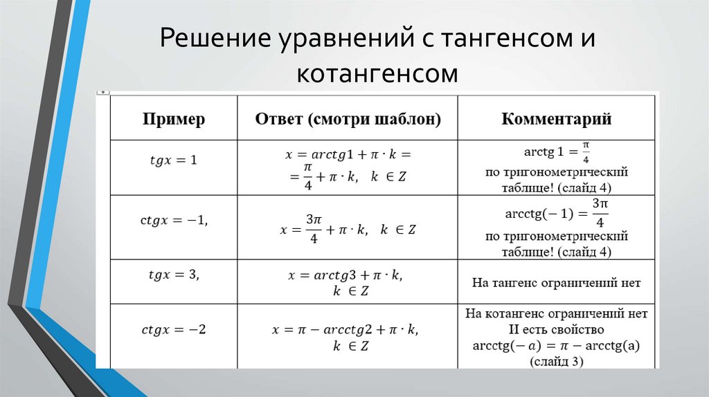 Решение уравнений с тангенсом икотангенсом