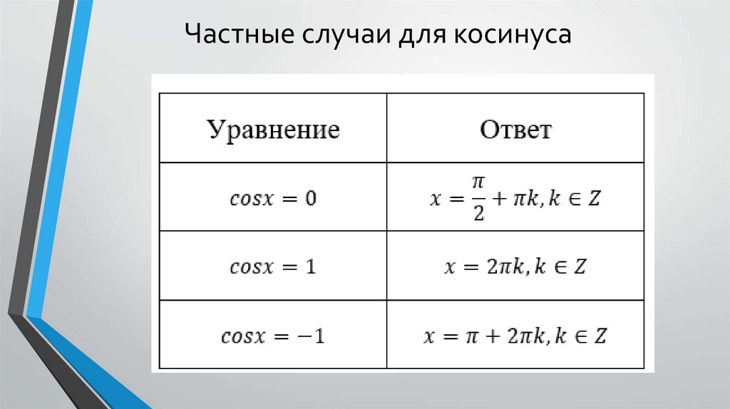 Частные случаи для косинуса11.