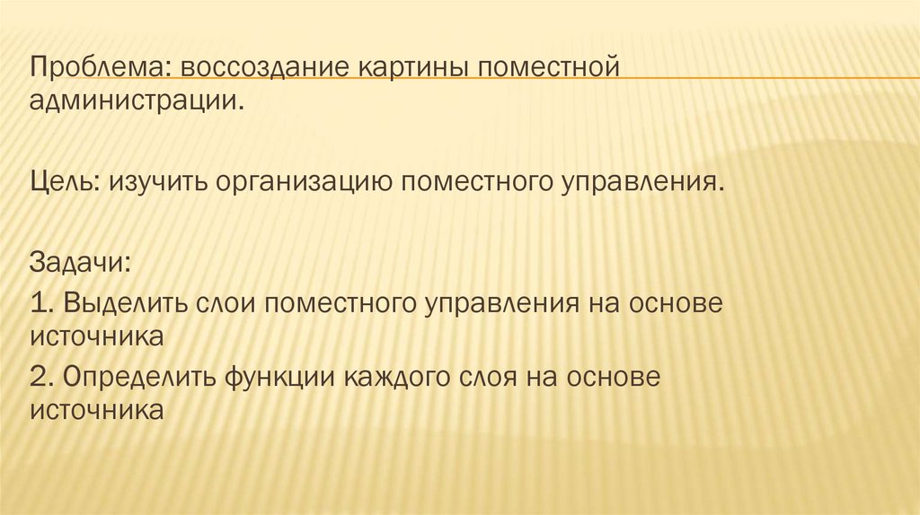 Проблема: воссоздание картины поместнойадминистрации.