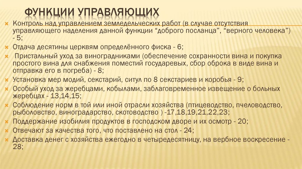 ФУНКЦИИ УПРАВЛЯЮЩИХКонтроль над управлением земледельческих работ (в случае отсутствия