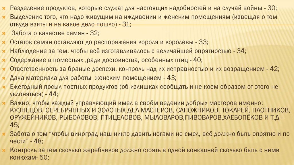 Поддержание изобилия продуктов в господском дворе и их осмотр - 20;
