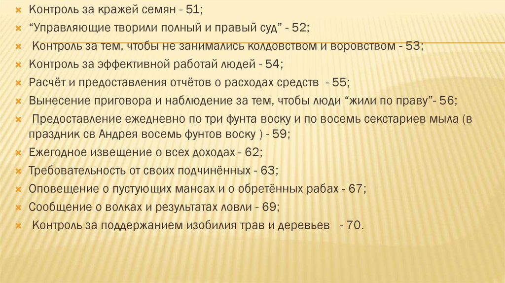 Контроль за тем, чтобы не занимались колдовством и воровством - 53;