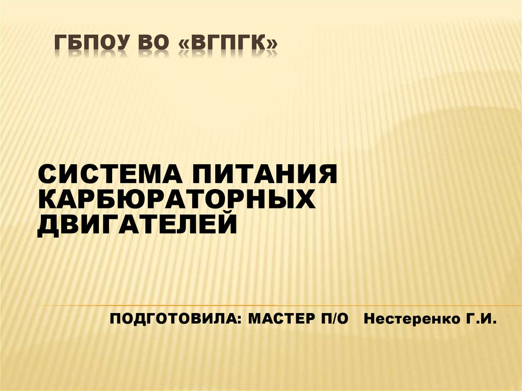 ПОДГОТОВИЛА: МАСТЕР П/О Нестеренко Г.И.