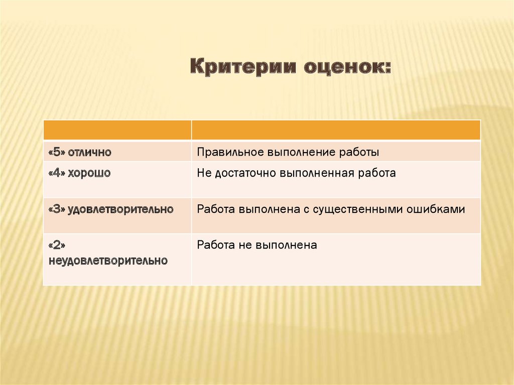 Критерии оценок:«5» отлично