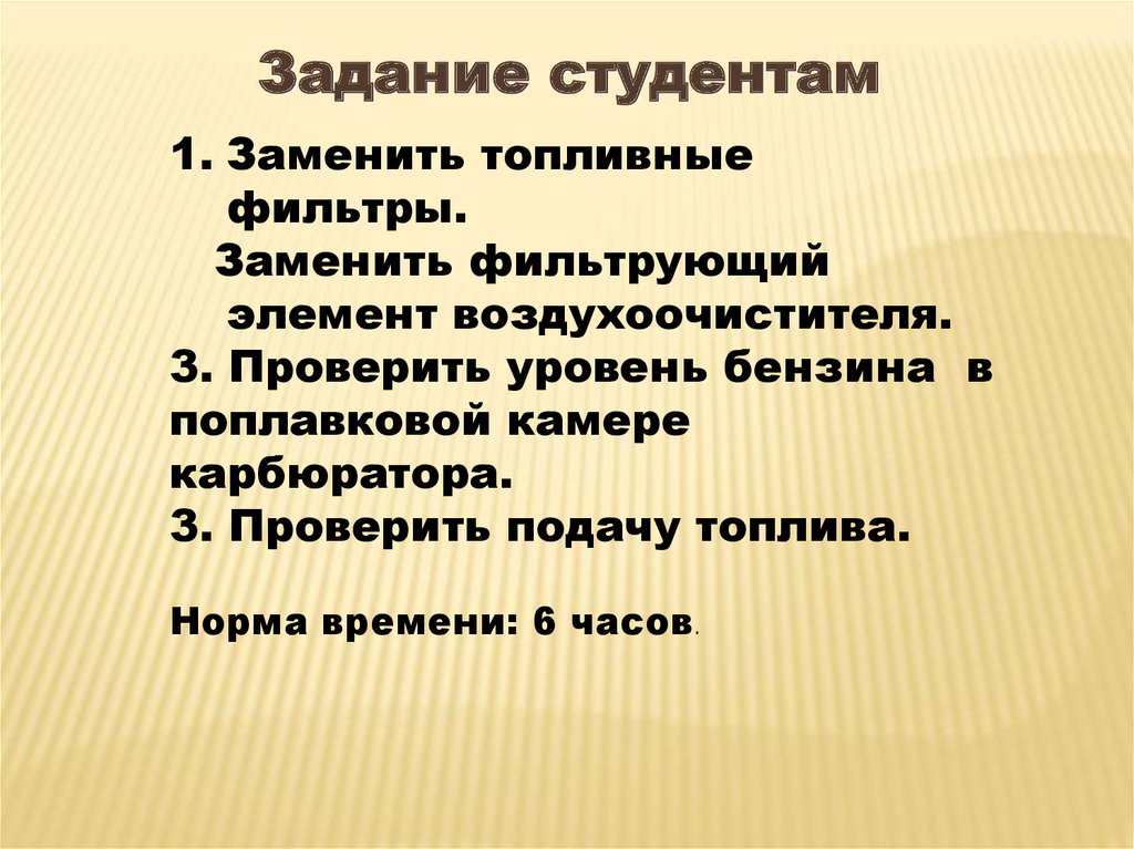 Задание студентам1. Заменить топливные