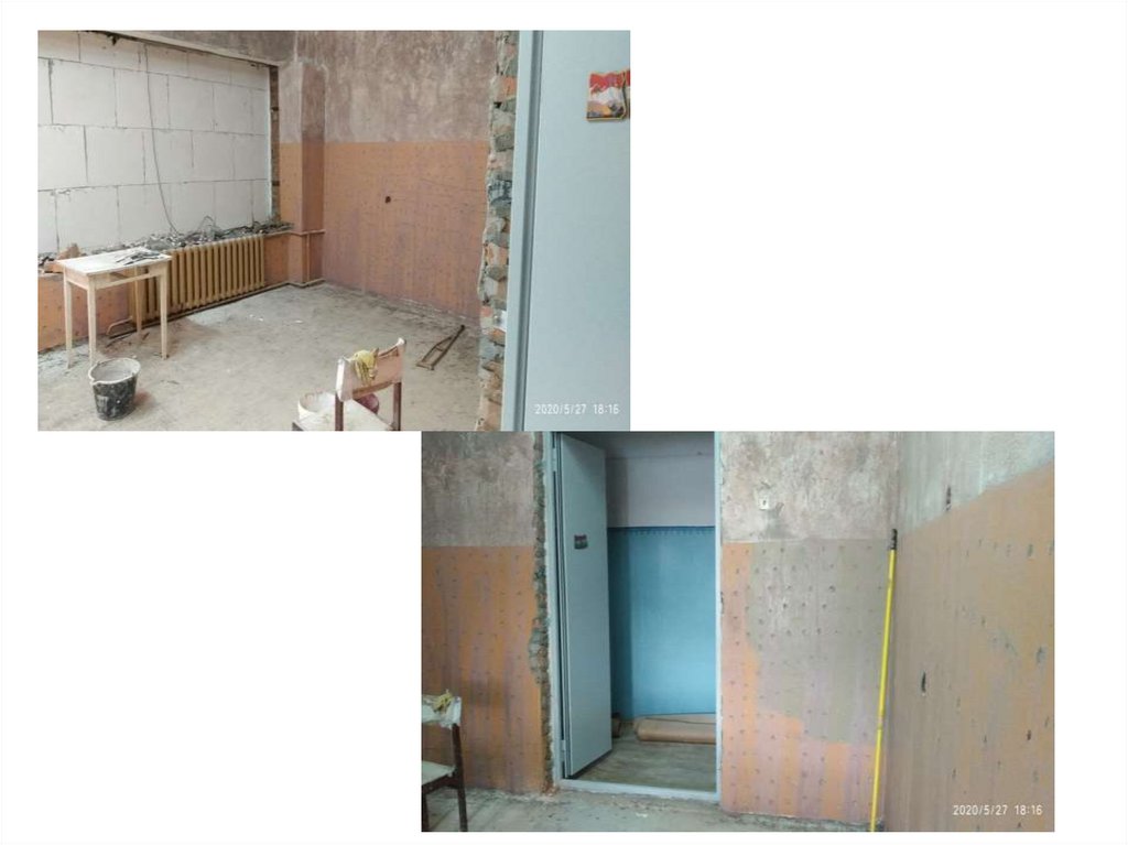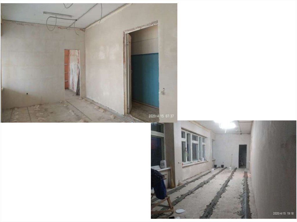 стен, потолков, напольного покрытия, замена всех дверей.