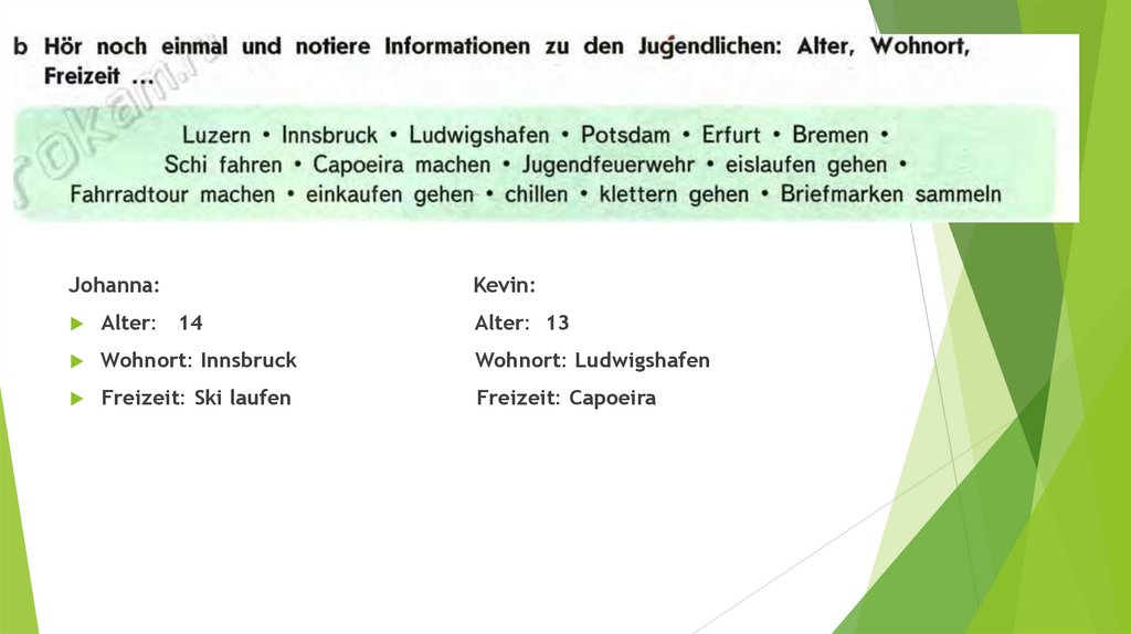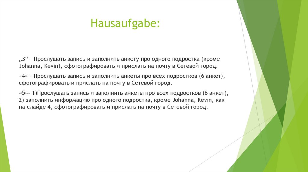 Hausaufgabe:„3“ – Прослушать запись и заполнить анкету про одного подростка (кроме