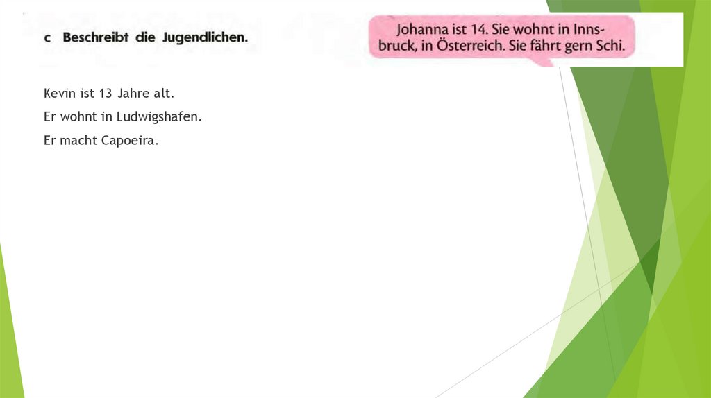 Kevin ist 13 Jahre alt.Er wohnt in Ludwigshafen.