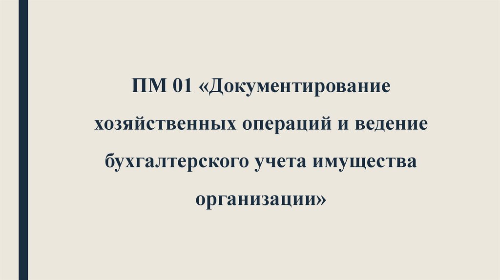 ПМ 01 «Документированиехозяйственных операций и ведение