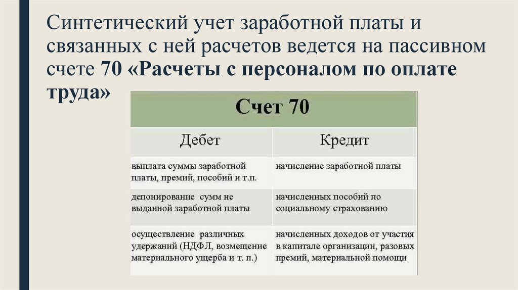 Синтетический учет заработной платы исвязанных с ней расчетов ведется на пассивном