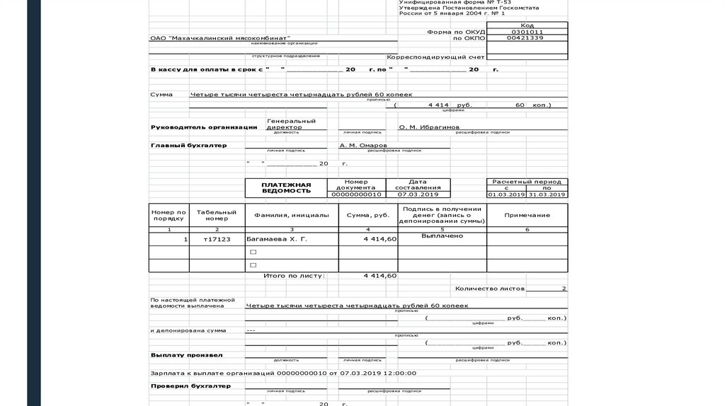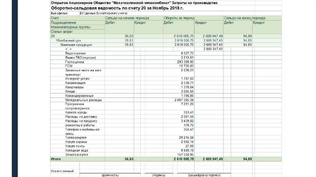 ■Бухгалтерия ОАО «Махачкалинский мясокомбинат» на основании первичных