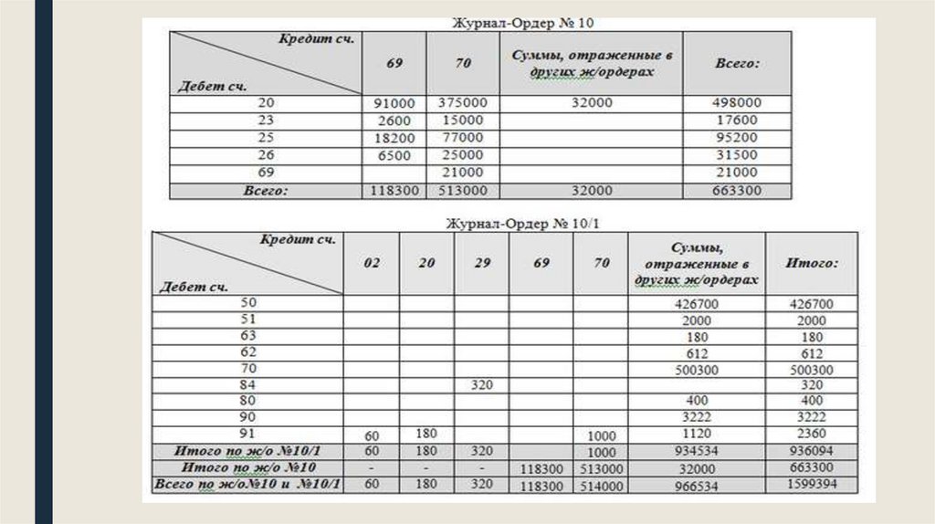 Сводный учет затрат. Составить журналордер №10. Определить фактическую