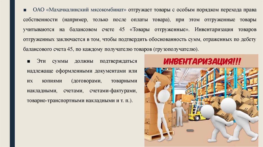 инвентаризации товарно-материальных ценностей отгруженных