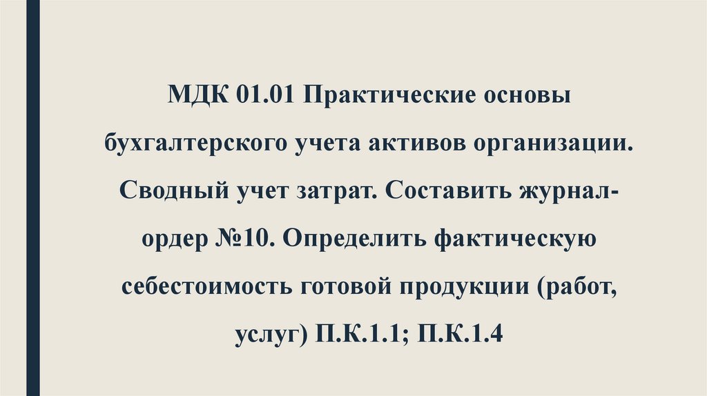 МДК 01.01 Практические основыбухгалтерского учета активов организации.
